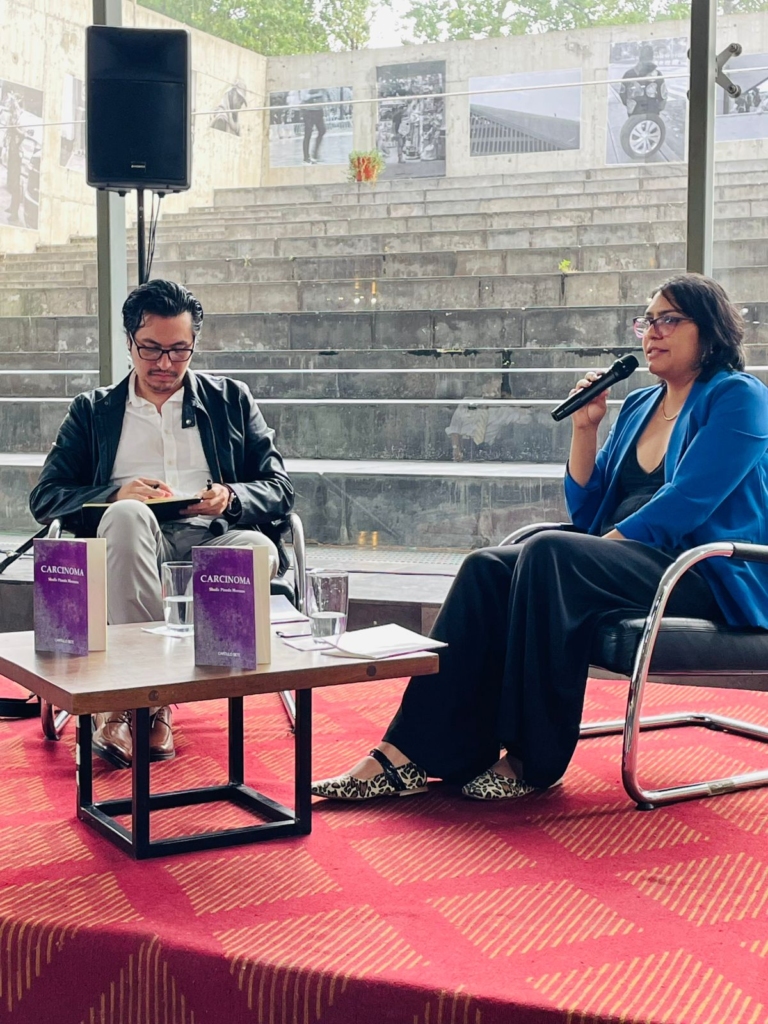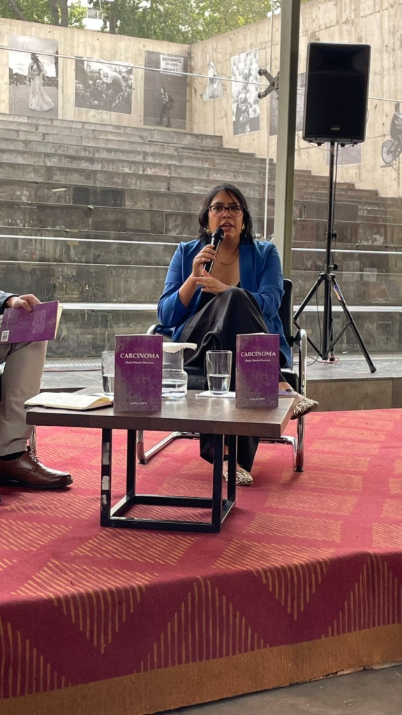 El pasado 21 de agosto de 2025 presentamos el libro de cuentos Carcinoma de la escritora mexicana Shaila Pineda Morones. En este libro la violencia se revela en cada uno de los relatos que lo conforman. La intensidad con la que Shaila Pineda construye sus historias fantásticas se ha convertido en una característica distintiva de su estilo, logrando crear un universo propio, desde el cual edifica realidades que parecen surgir de las zonas más profundas de sus pesadillas.